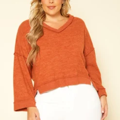 Plus Size Relaxed Fit V Neck Open Back Sweater