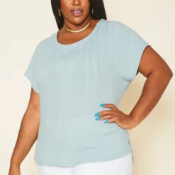 Plus Size Ribbed Casual T Shirt & Shorts Set