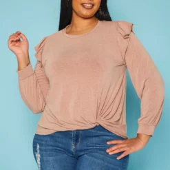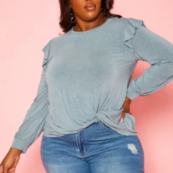 Plus Size Ruffle Trim Long Sleeve Top