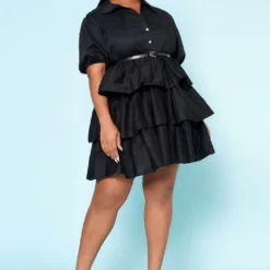 Plus Size Ruffle Tiered Flare Mini Dress