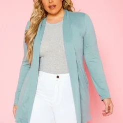 Plus Size Solid Tube Dress & Duster Cardigan Set