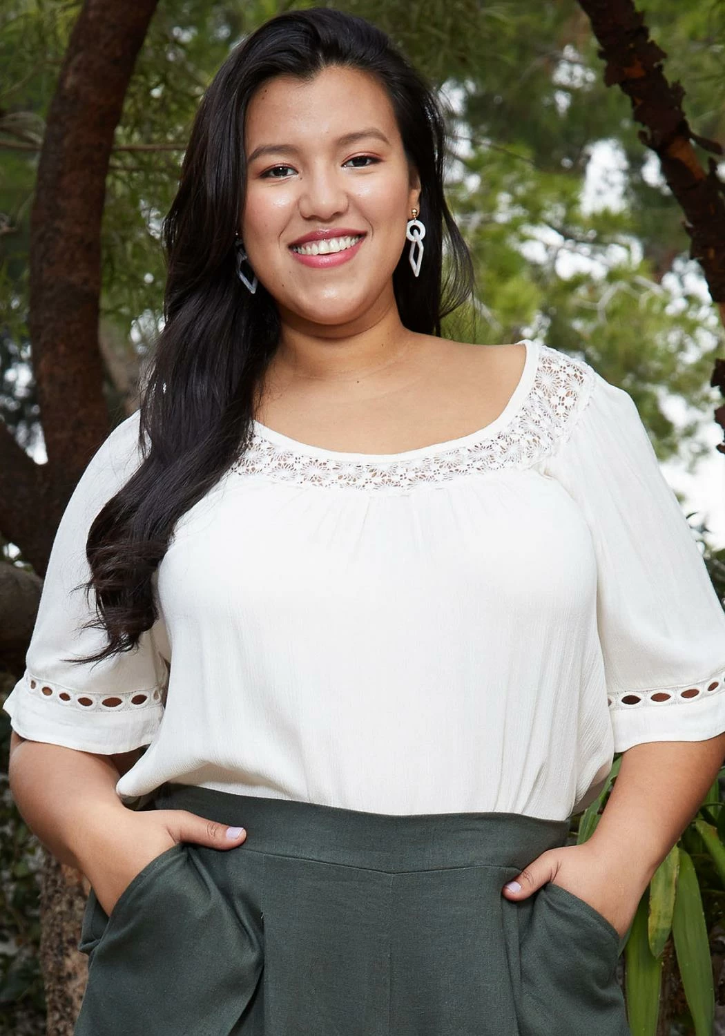 Lace trim neck and sleeve