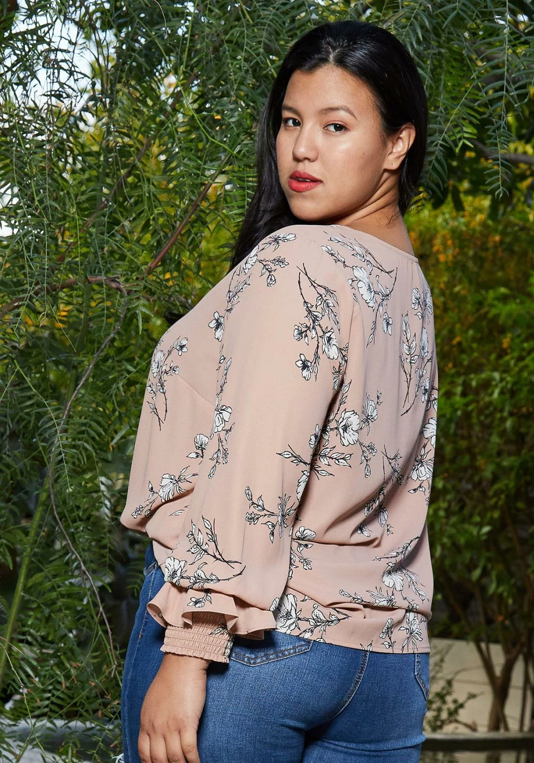 Pleione Round Neck Plus Size Women Clothing Smocked Ruffle Cuff Top - Image 4