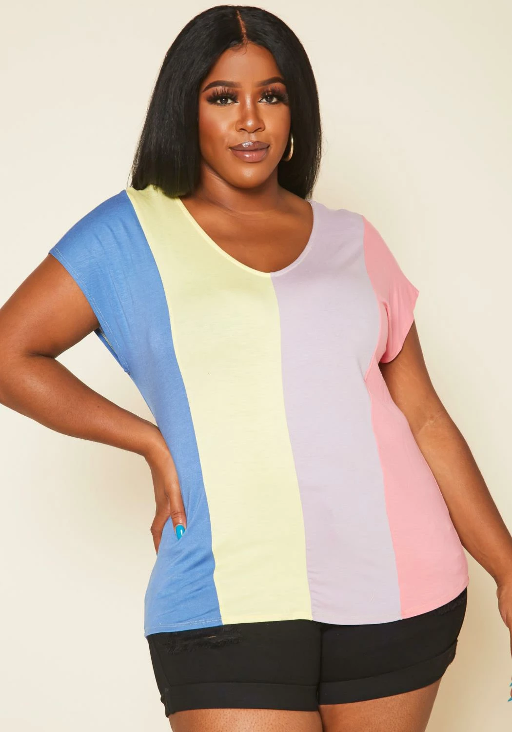 Summer essential T-shirt for plus size women in full length style and v-neck design.