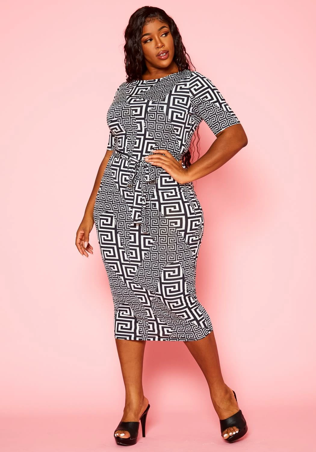 Gorgeous plus size women’s midi dress in bodycon fit, half sleeves and waist tie ascent.