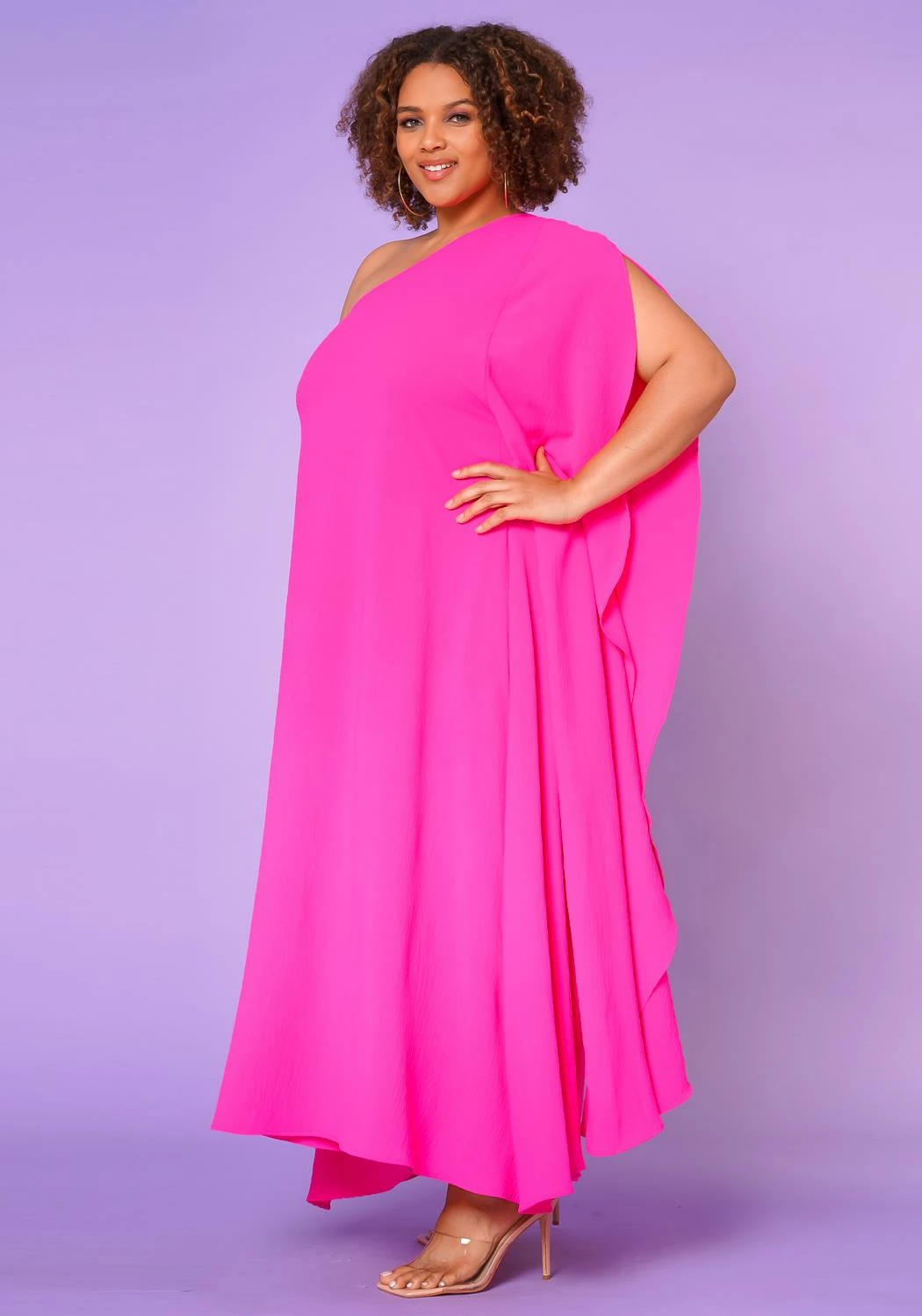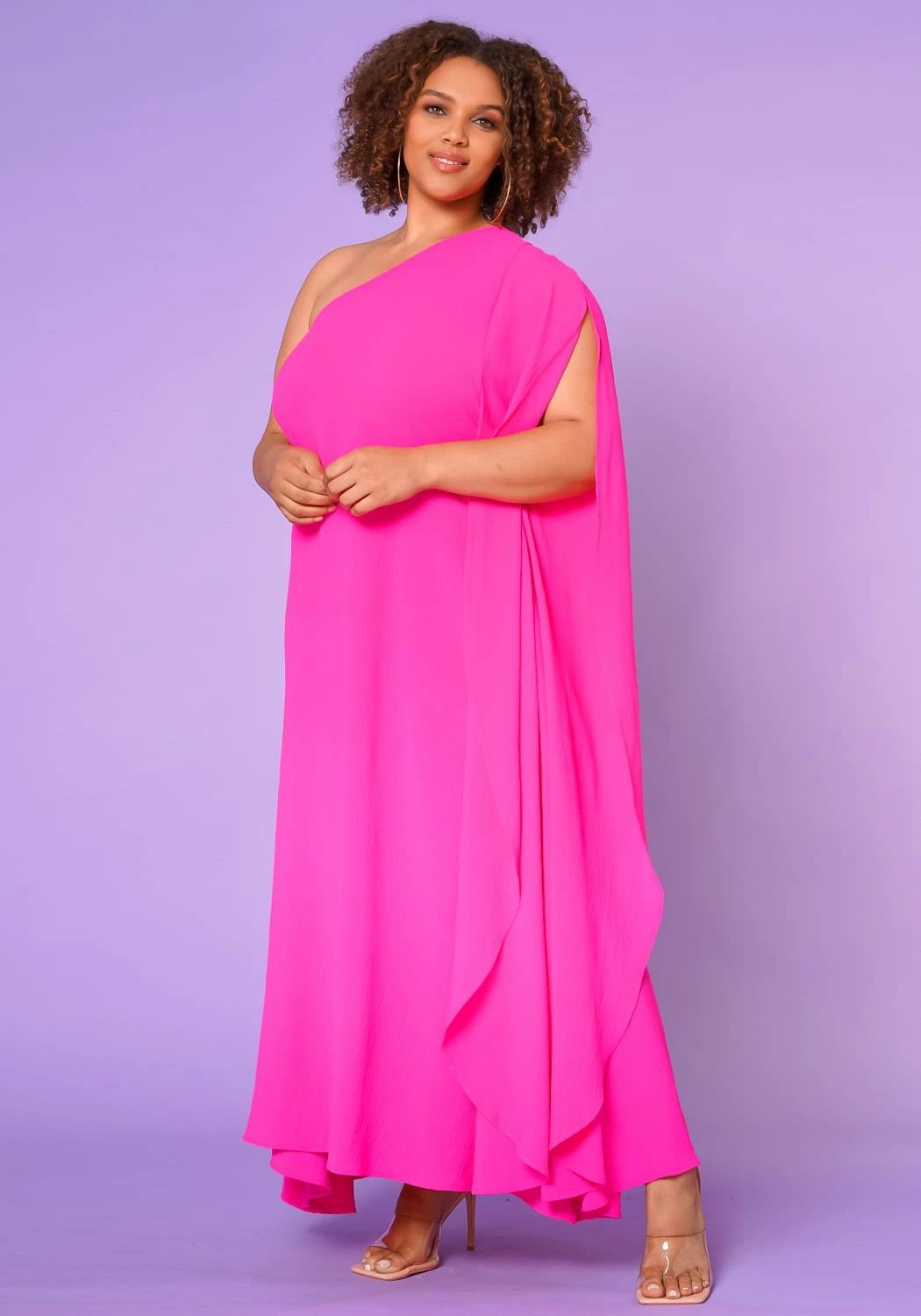 Effortless maxi dress in casual one shoulder design and a v-open cut flare detail for an extra ascent.