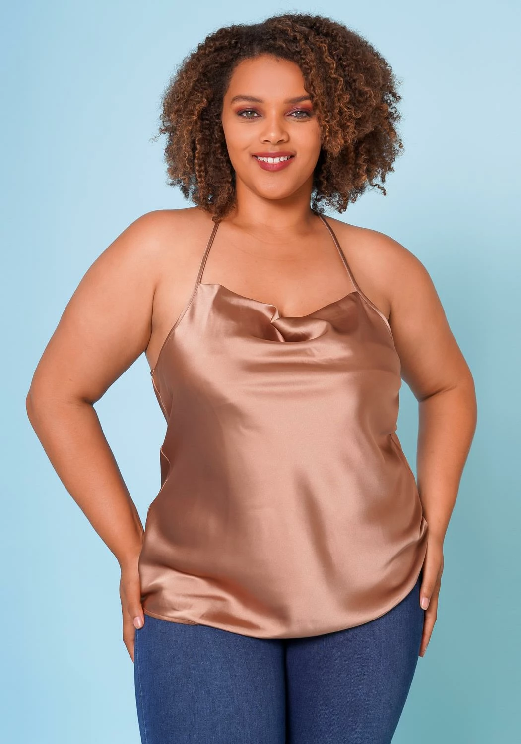 Gorgeous plus size women’s cami top in cowl neck style and quality satin material.
