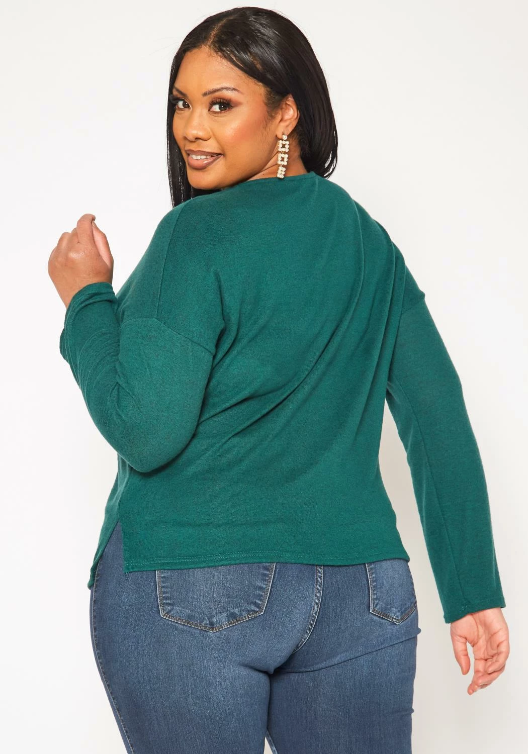 Casual plus size women’s long sleeve shirt in snakeskin print pocket detail, v-neck style, long sleeves and side slit hem.