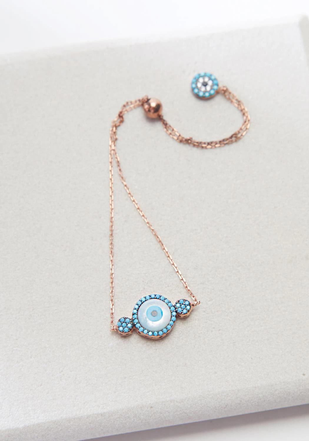 BEAUTIFUL HAND MADE ROSE GOLD ROUND EVIL EYE BRACELET ADJUSTABLE TO ALL SIZES