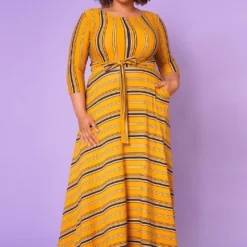 Plus Size Multi Striped Fit & Flare Maxi Dress