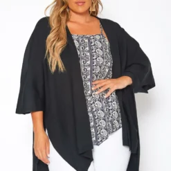 Asoph Plus Size Ribbed Knit Kimono Cardigan