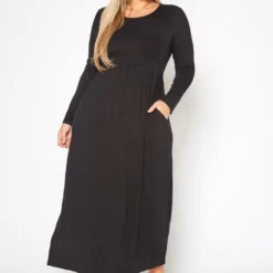 Plus Size Basic Long Sleeve Fit & Flare Maxi Dress