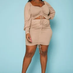Plus Size Drawstring Hem High Waist Maxi Skirt