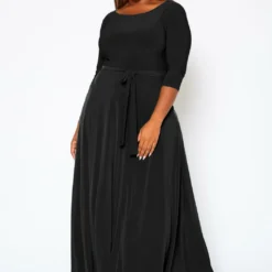 Plus Size Drawstring Hem Shimmer Maxi Skirt