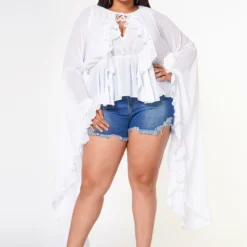 Plus Size Exaggerated Bell Sleeves Peplum Top