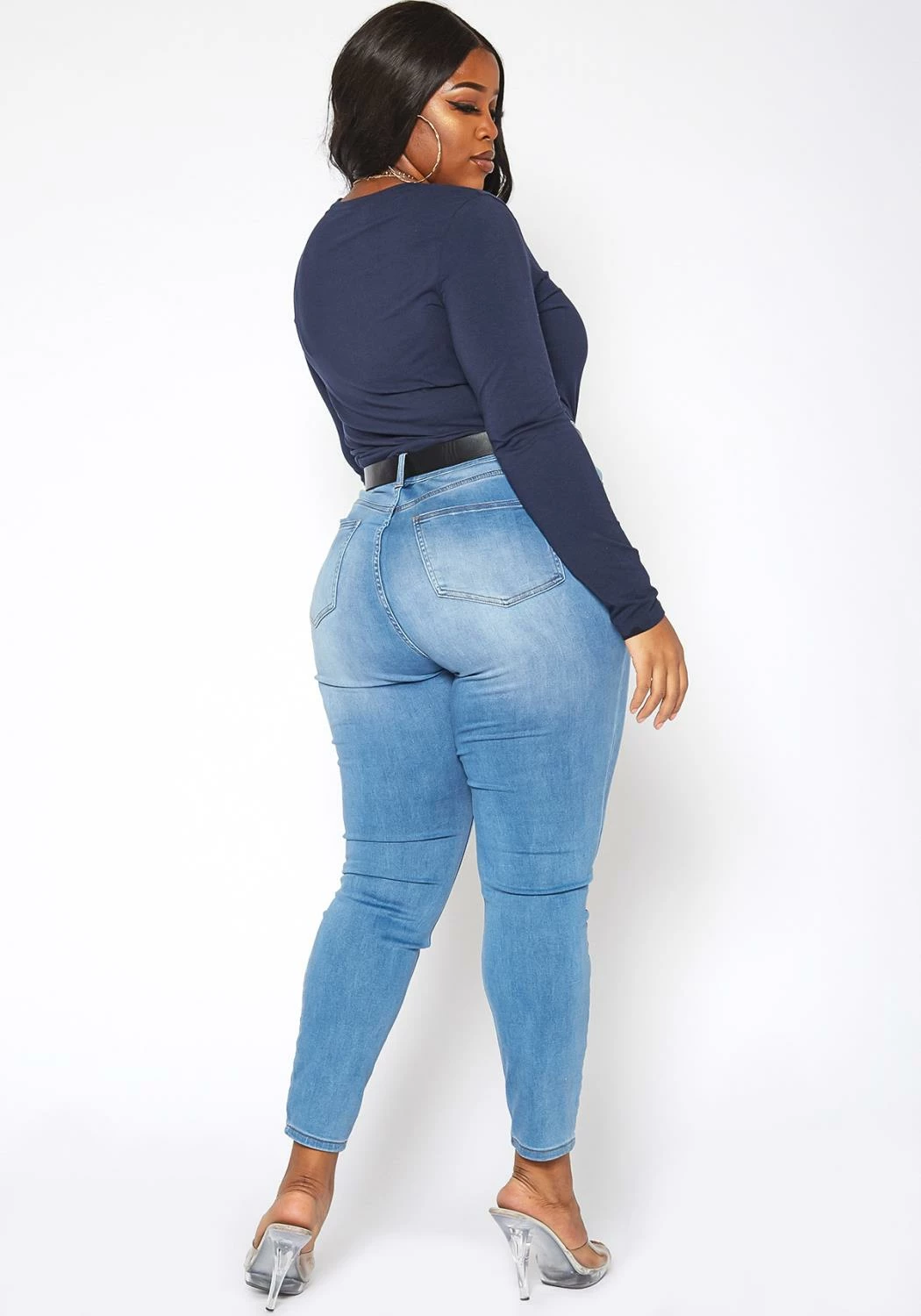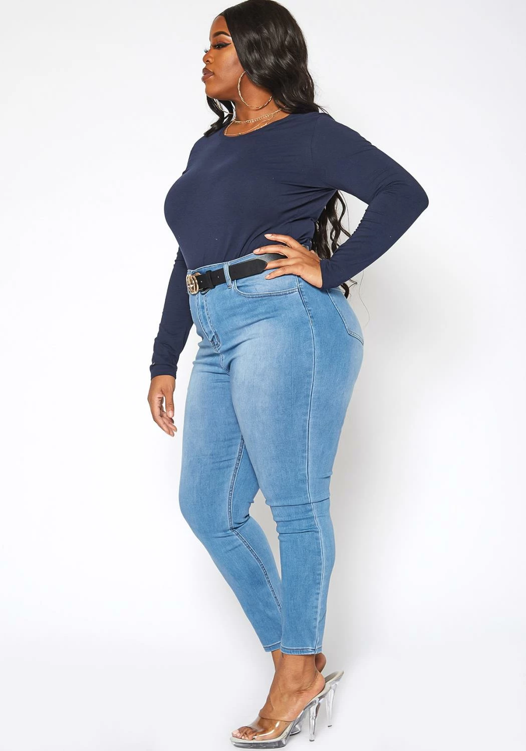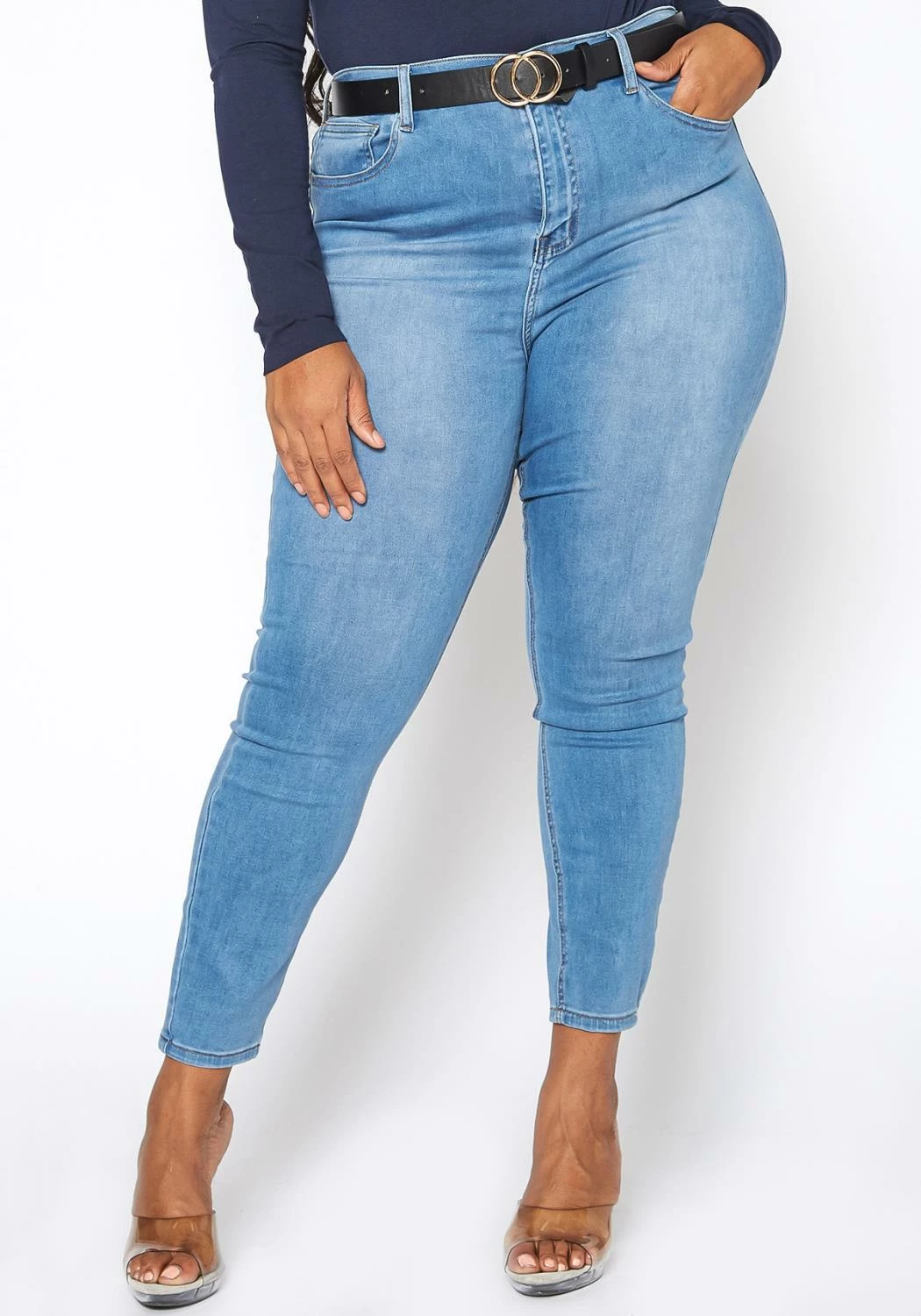 Asoph x Vibrant plus size women’s basic everyday skinny denim jeans in high waisted style plus includes belt loop holes and pockets.