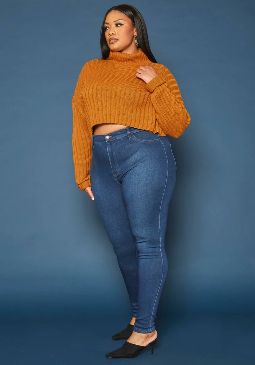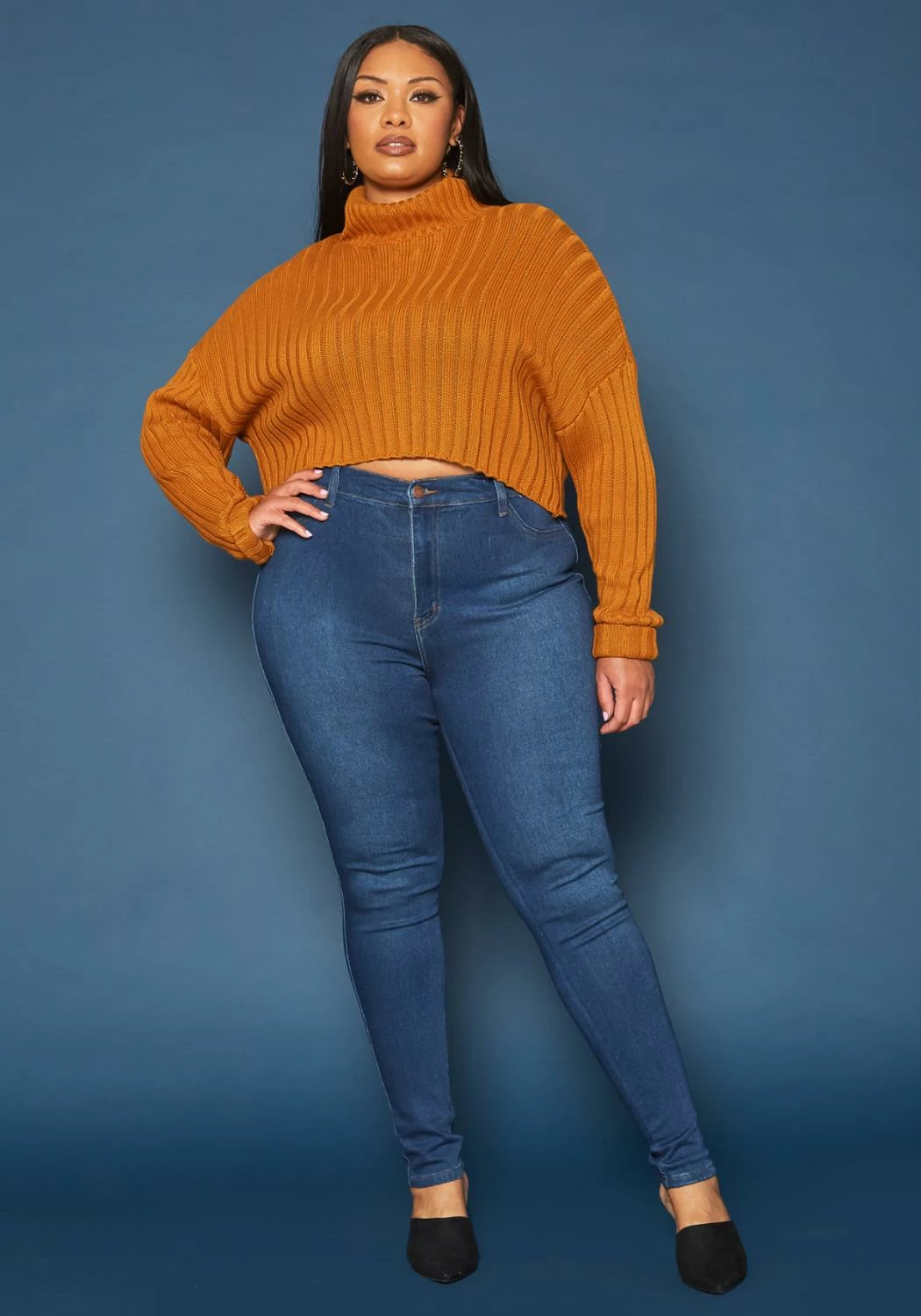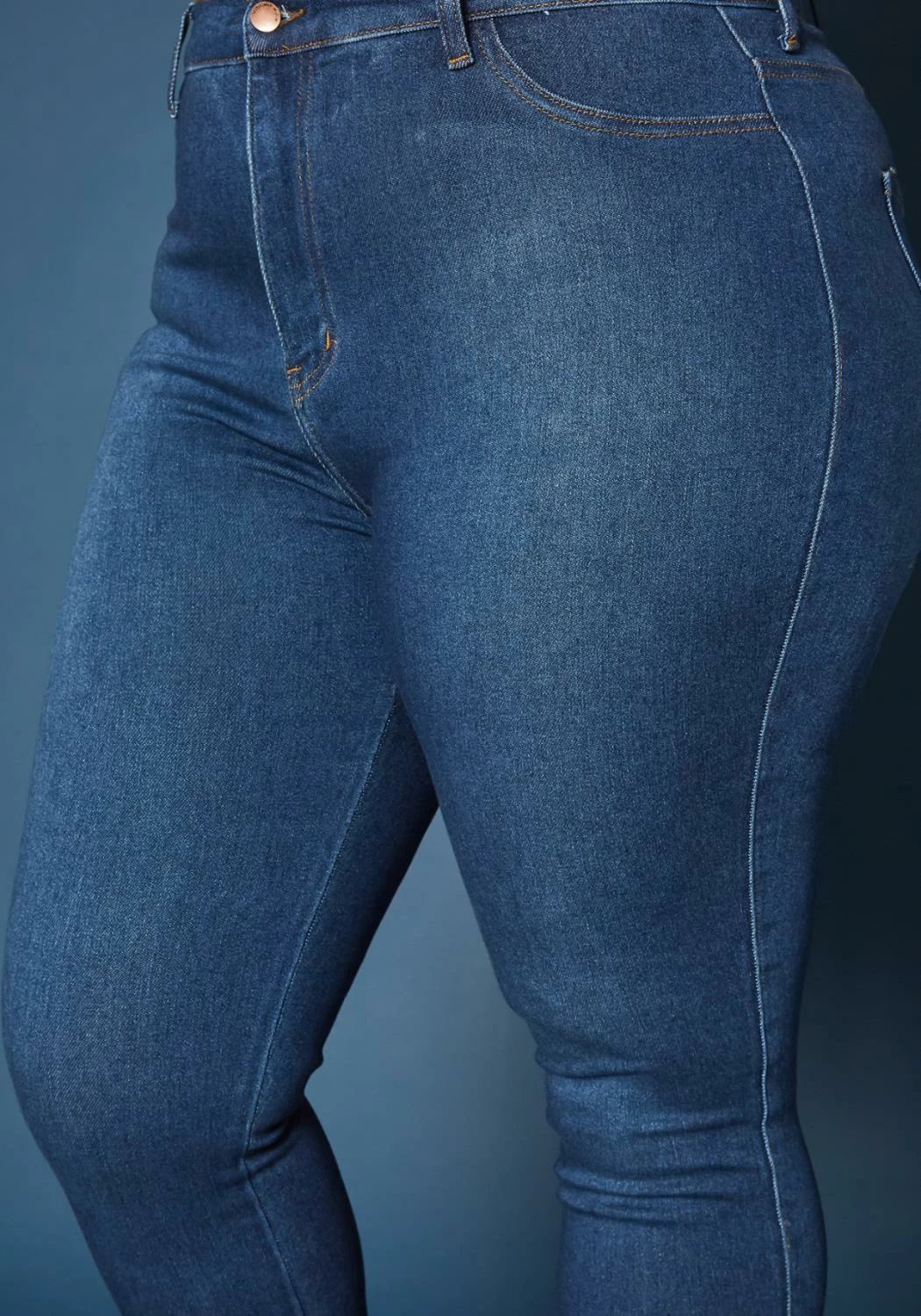 Asoph x Vibrant plus size women’s basic everyday skinny denim jeans in high waisted style plus includes belt loop holes and pockets.