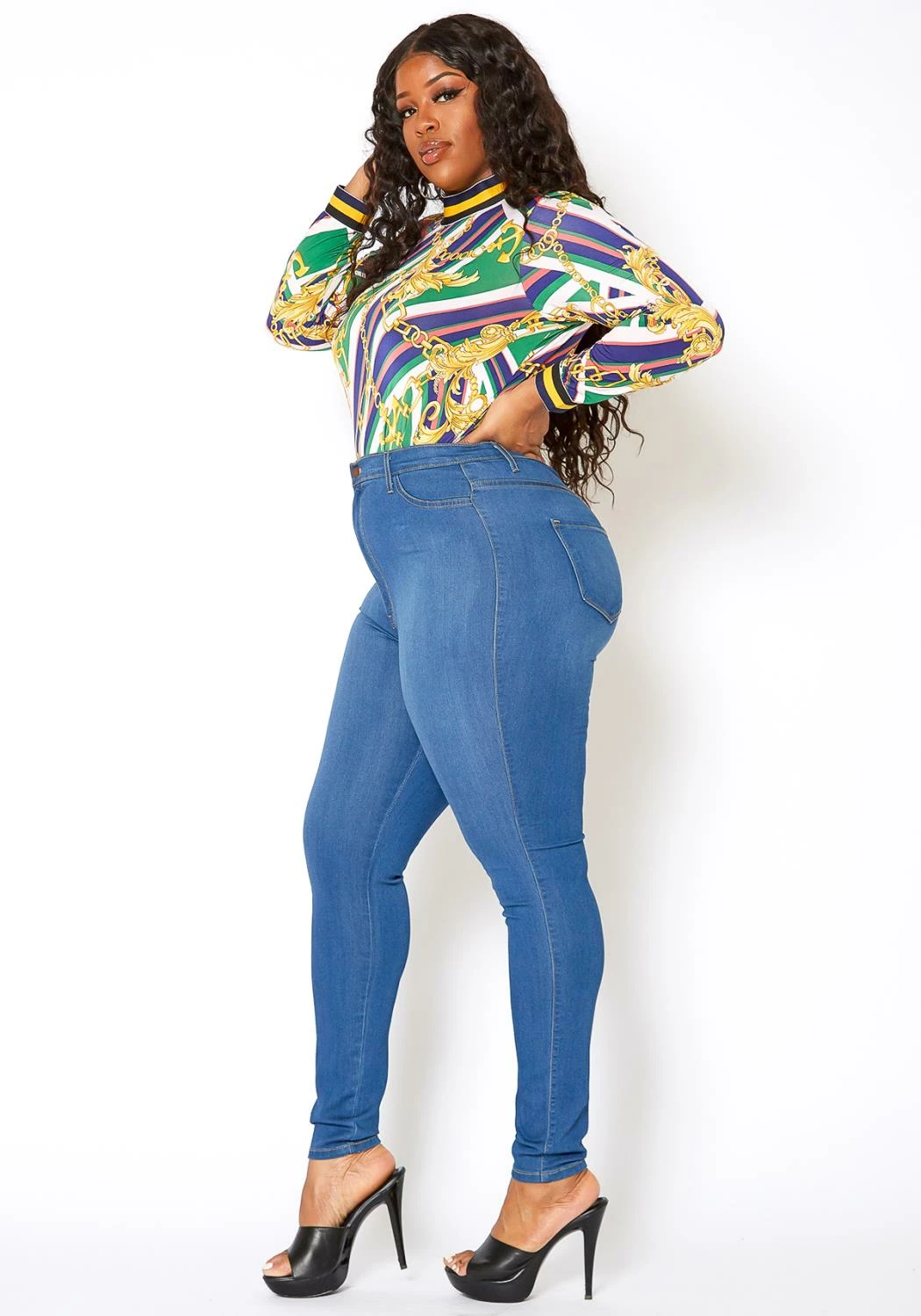 Asoph x Vibrant plus size women’s basic everyday skinny denim jeans in high waisted style plus includes belt loop holes and pockets.